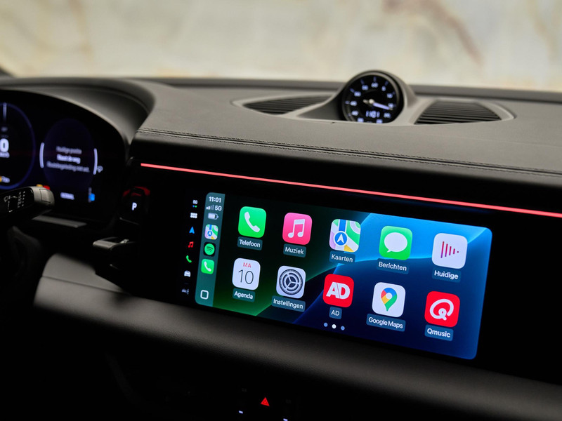 Dankzij de Adaptieve luchtvering (1BK) met PASM geniet u van optimaal rijcomfort en sportieve prestaties. Het Panoramadak (3FU) voegt een ruimtelijk gevoel toe, terwijl de verwarmbare stuurwiel (AI9) en de verlichte ‘PORSCHE’-logo’s (NR2) in de voorstoelen extra luxe uitstralen.