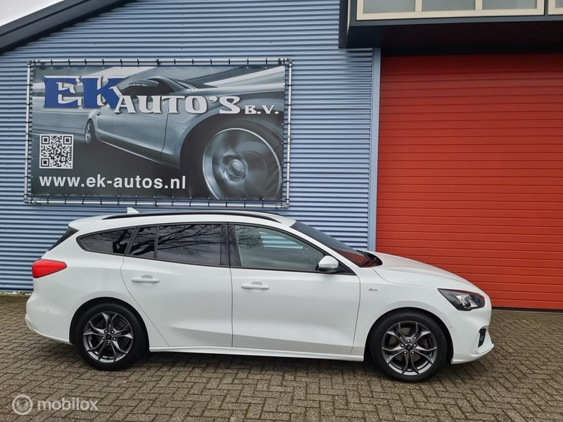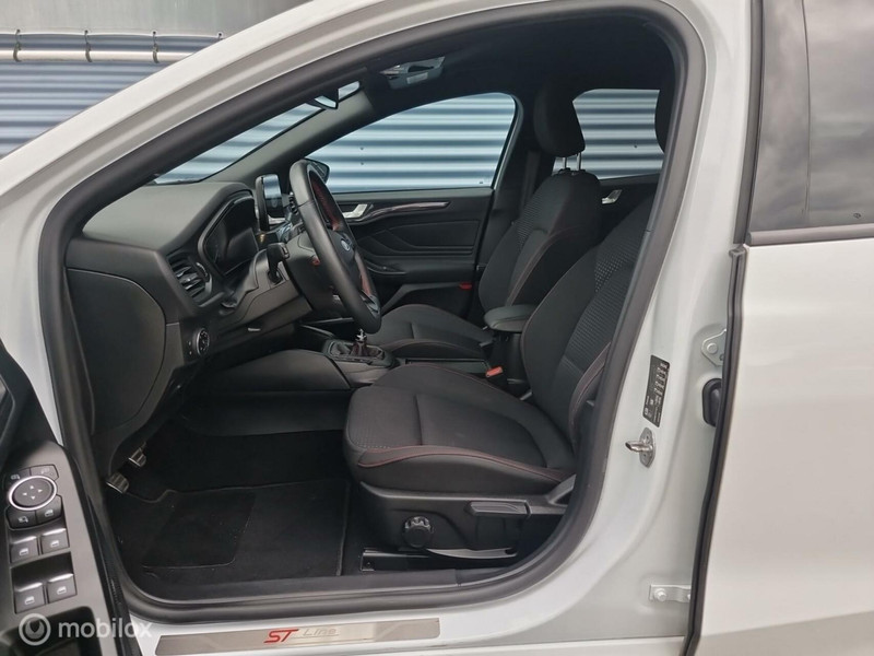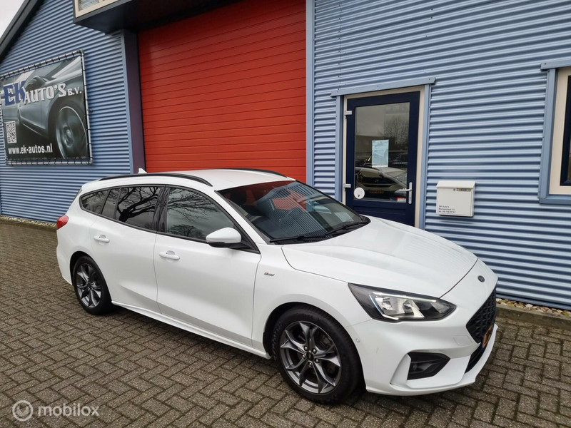 Ford Focus Wagon 1.0 EcoBoost ST Line Luxe. B&O audio, Keyless entry, Keyless start, Achteruitrijcamera, DAB+ radio, Parkeersensoren, Automatisch inparkeren, Stuurverwarming, Stoelverwarming, Voorruitverwarming, Adaptieve cruise-control, ECC klimaatcontrol, Lane assist, Zwarte hemelbekleding, ST-Sportpakket, LM velgen, Donkere ramen achter, Dimmende binnenspiegel, Regensensor, Lichtsensor, Bluetooth streamen, Bluetooth telefoon, Spraakbediening, Ford connect app service, USB, aux.