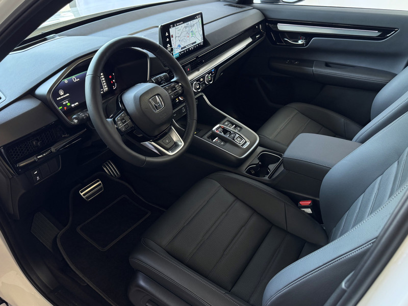 De hybride aandrijflijn van Honda is gebaseerd op een 2.0-benzinemotor die volgens de Atkinson-cyclus draait (wat voor een hogere efficiëntie en dus een lager verbruik zorgt) en twee elektromotoren (waarvan een hoofdmotor van 135 kW/184 pk en 335 Nm), en kan volgens verschillende modi werken. Je kan elektrisch rijden op de batterij, elektrisch via de stroom die wordt gegenereerd door de verbrandingsmotor die als generator werkt, of rechtstreeks op benzine. Om deze laatste mogelijkheid nog efficiënter te maken, heeft Honda een tweede (kortere) overbrenging toegevoegd om de verbrandingsmotor ook aan lagere snelheden aan de wielen te kunnen koppelen. Wanneer deze oplossing de meest efficiënte is (vooral bij constante snelheden), kan de verbrandingsmotor voortaan dus ook rechtstreeks de wielen aandrijven binnen bebouwde kom, en dus niet meer exclusief aan hogere snelheden zoals bij de vorige CR-V hybride.