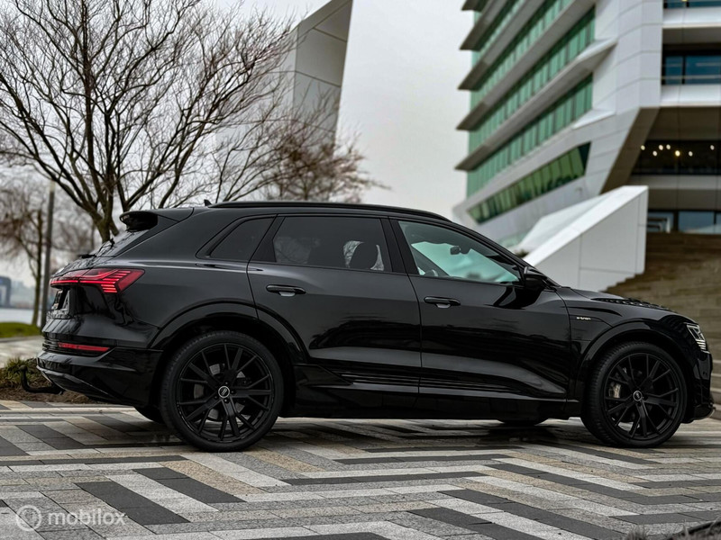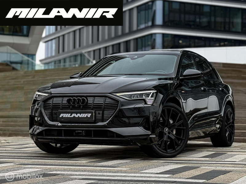 Prachtige Audi e-tron 55 in stijlvolle black on black uitvoering. Deze luxe elektrische SUV heeft een WLTP-actieradius van ca. 420 km en is voorzien van mooie opties zoals lederen bekleding, adaptieve cruise control, geheugenstoelen en een 360° camera.