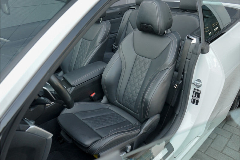 Autobedrijf Schouten biedt u deze BMW 4-Serie Cabrio 420i High Executive Individual aan, origneel Nederlands en afkomstig van de eerste eigenaar. Het exterieur is uitgevoerd in de metallic parelmoer lak: 'Mineralweiss', gecombineerd met een zwart individual lederen interieur. Verder beschikt de BMW 4-Serie Cabrio 420i High Executive Individual over een mooie lijst met opties, waaronder: