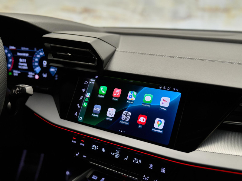 Deze Audi A3 biedt ongekend comfort en gemak. Het Panoramisch glazen dak (3FB) laat extra licht binnen en versterkt het ruimtelijke gevoel in de auto. Het Ambiente-lichtpakket Plus (QQ2) zorgt voor sfeervolle verlichting in het interieur en biedt de mogelijkheid om kleuren naar wens aan te passen. De Comfortsleutel (4K5) maakt instappen en starten gemakkelijk zonder de sleutel actief te gebruiken, terwijl de Automatisch dimmende binnenspiegel, frameloos (4L2) verblinding voorkomt. Dankzij de Klimaatregeling Plus (PYC) is het interieur altijd aangenaam, ongeacht het weer buiten.
