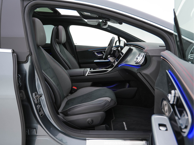 ⭐ Mercedes-Benz EQE 350+ AMG-Line Launch Edition 91 kWh in Selenite Grey Metallic met zwart antraciet ARTICO lederlook en MICROCUT microvezel bekleding met contrasterende rode siernaden | Elektrisch, Luxe & Performance