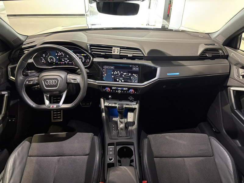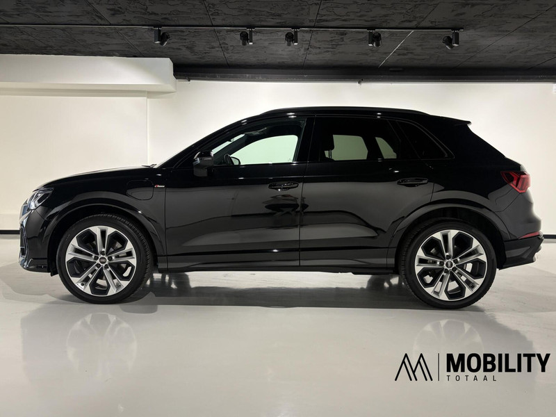 Bijzonder mooie en complete Audi Q3 45 TFSI e S-Line / Pro line S Black Edition 245pk met een S-tronic automaat! In de prachtige kleurstelling Deep Black Metallic zwart met een mooi Black Edition pakket wat voor een zeer sportieve uitstraling zorgt. De Audi Q3 heeft het S-line interieur en exterieur en nog een aantal fijne en unieke opties zoals een Sonos geluidsinstallatie, Demperregeling (Magnetic Ride), Elektrisch inklapbare trekhaak, Leder/Alcantara S-Line interieur, Matrix led koplampen. Led achterlichten 20 inch Audi Sport velgen, achteruitrijcamera, Stoelverwarming, Ambient sfeer verlichting, Adaptieve cruise control, Side assist, Lane assist, Virtual cockpit en nog veel meer. De auto is dealer onderhouden en verkeert in uitstekende staat!