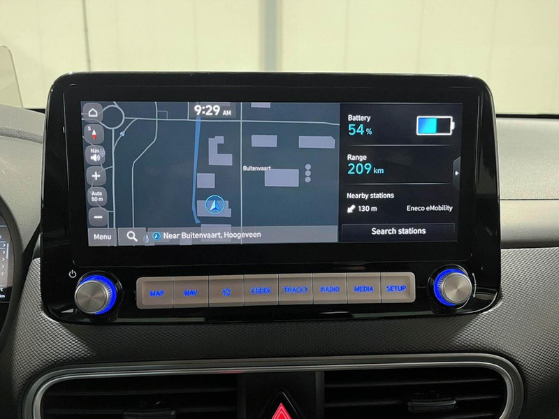 Zoals je mag verwachten van deze Hyundai Kona is hij uitgerust met een reeks aan actieve veiligheidssystemen. Ongemerkt buiten de rijstrook raken? Nee hoor, het Lane-keeping systeem waarschuwt en corrigeert. De forward collision warning geeft een botswaarschuwing als een aanrijding dreigt met een voorligger. De veiligheidssystemen in deze auto nemen het zelfs waar als de bestuurder tekenen van vermoeidheid vertoont, en waarschuwen dan met een duidelijk signaal. Je bent mede dankzij head-up display, dodehoekdetectie, hill hold functie, autonoom remsysteem en bandenspanningcontrolesysteem steeds veilig onderweg.