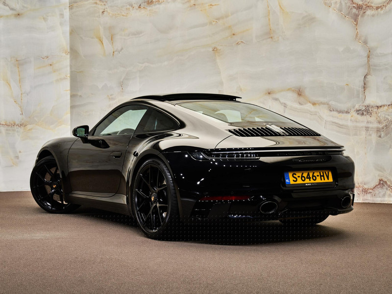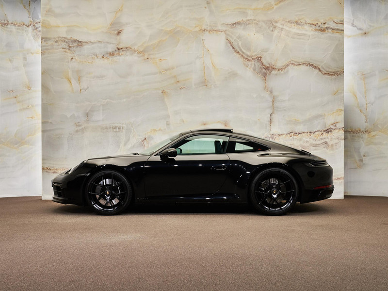 Het exterieur van deze GTS is uitgevoerd in Diepzwart metallic (2T), wat de gespierde lijnen van de 911 perfect benadrukt. Het design wordt verder verfijnd met exclusieve details zoals de Exclusive Design tankdop (2W6) en elektrisch inklapbare buitenspiegels (6XV). Het elektrisch glazen schuifdak (3FE) zorgt voor extra lichtinval en een ruimtelijk gevoel in het interieur. Bovendien beschikt de auto over gepersonaliseerde verlichte dorpellijsten (ATY) die bij het openen van de deur een exclusieve uitstraling geven.