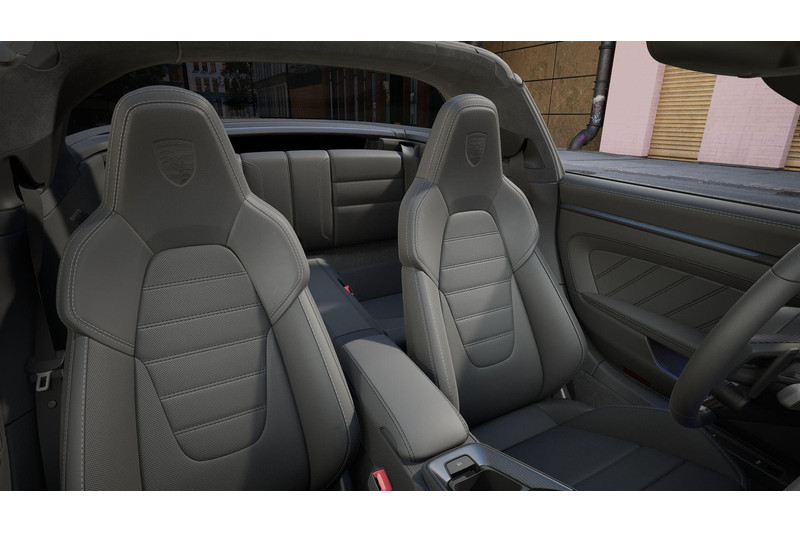Het interieur ademt pure Porsche-luxe. De Adaptieve sportstoelen Plus (Q1J) bieden uitstekende zijdelingse steun en zijn volledig elektrisch verstelbaar met geheugenfunctie. Dankzij stoelventilatie vóór (4D3) blijft het comfortniveau hoog, zelfs tijdens sportief rijden. Het lederpakket 930 (3HB), de dashboardbekleding in leder (5HB) en de lederbeklede zonnekleppen (5XH) zorgen voor een hoogwaardige en exclusieve ambiance.