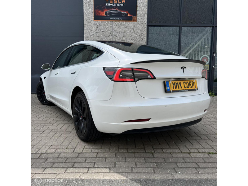 (bijv. zwarte spoiler, aluminium pedalen, zwarte turbine wieldoppen met rood logo, geluiddempende was voor de ruit, zwarte Tesla-logo’s op frunk, trunk en stuur)