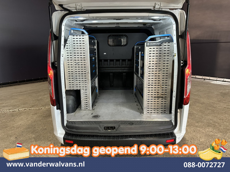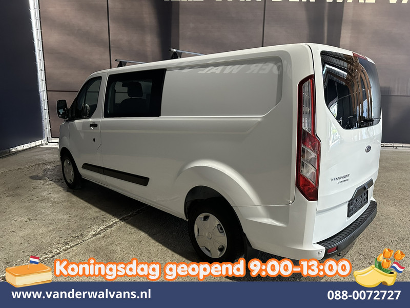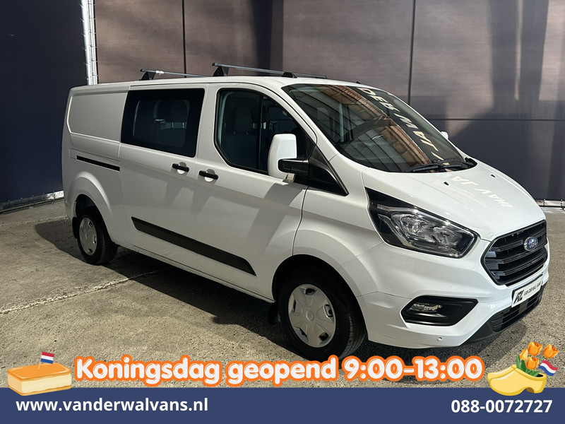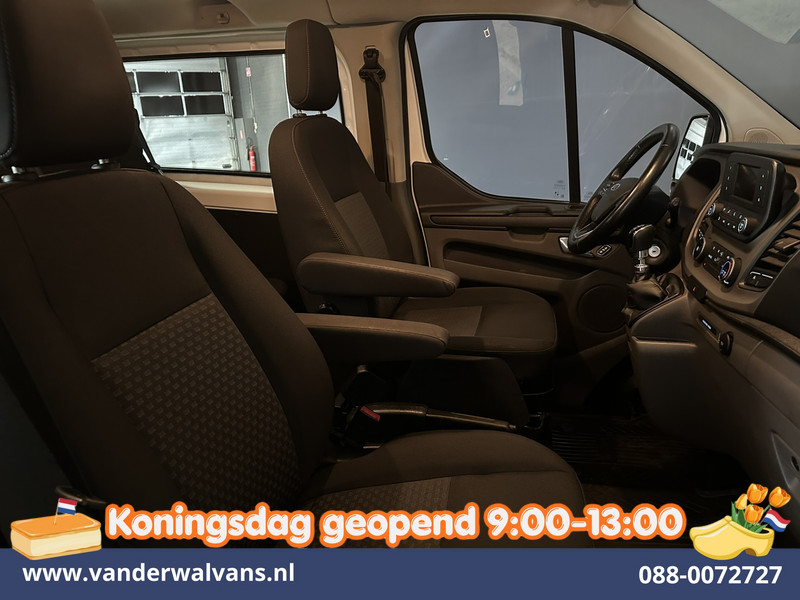 131pk sterke Ford Transit Custom L2H1 Euro6 dubbel cabine met airconditioning, 5 zitplaatsen en inrichting. Dealer onderhouden en tevens voorzien van camera, cruisecontrol, LED, parkeersensoren, stoelverwarming, achterklep, dakdragers en bluetooth telefoonvoorbereiding.