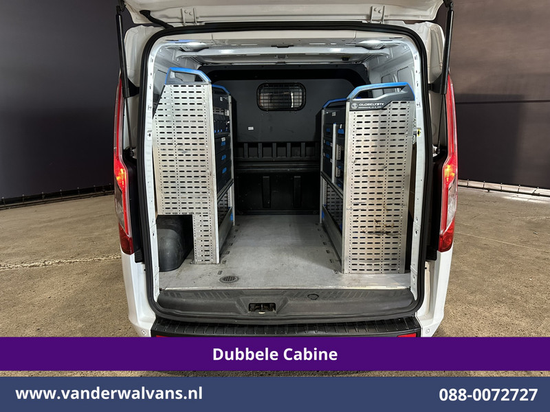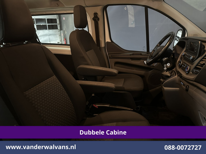 131pk sterke Ford Transit Custom L2H1 Euro6 dubbel cabine met airconditioning, 5 zitplaatsen en inrichting. Dealer onderhouden en tevens voorzien van camera, cruisecontrol, LED, parkeersensoren, stoelverwarming, achterklep, dakdragers en bluetooth telefoonvoorbereiding.
