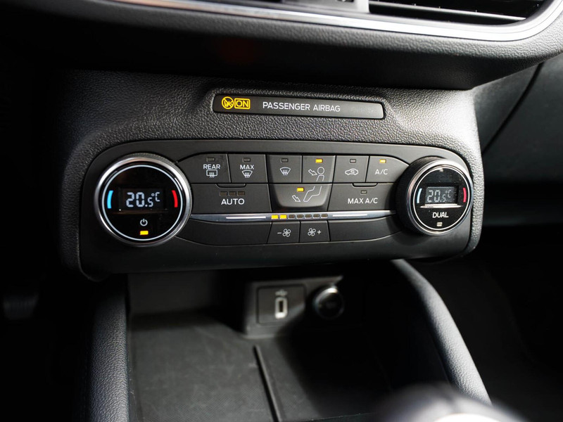 Pragmatisch en veilig als deze auto is, beschikt hij over diverse veiligheidssystemen. Een camera houdt de juiste koers binnen de rijstrook in de gaten en het Lane-keeping systeem corrigeert bij afwijkingen. Mindert een voorligger onverwachts te veel vaart, dan komt de forward collision warning in actie en waarschuwt meteen. In deze Ford vinden we verder een hill hold functie, brake assist en bandenspanningcontrolesysteem.