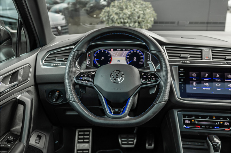 De R uitrusting geeft de Tiguan een sportieve identiteit die subtiel genoeg is voor doordeweeks maar uitgesproken genoeg om nooit door te gaan voor gewoon. De R-specifieke bumpers, de 20-inch Estoril wielen, de blauwe remklauwen en het interieur met R sportstoelen, blauw ambient verlicht stuurwiel en de R badge op elke relevante plek — dit is de Tiguan voor de rijder die zijn SUV niet wil opgeven maar zijn rijplezier ook niet. Een compromis dat geen compromis voelt.
