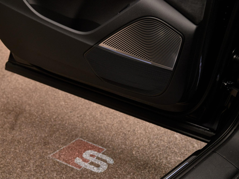 De uitstraling wordt bepaald door Mythoszwart metallic (0E0E), Optiekpakket zwart plus (4ZP) en Stylingpakket carbon (6FM). Binnenin: mat carbon twill decor (5MH), hemel in Dinamica (PL2), Leder Valcona met S-logo’s (N0Q) en Lichtpakket plus met ambient lighting (QQ2). Buitenspiegels 6XL zijn elektrisch inklapbaar, verwarmbaar, aan beide zijden automatisch dimmend en met geheugen. Velgen Audi Sport 22” (C9Y) met 285/35 R22 banden maken het plaatje af.