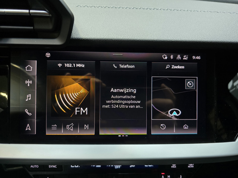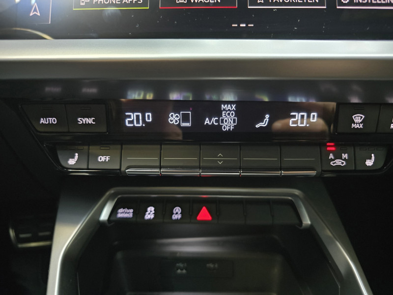 De digitale wereld van mobiliteit verwelkomt u; op het digitale dashboard wordt alles weergegeven om uw rit gemakkelijk en veilig te maken. Pech of storing, altijd vervelend. Maar met Connected Services weet u direct wat eraan scheelt. En dus ook wat er moet gebeuren. In deze A3 Limousine vindt u schakelaars op het stuur om het navigatiesysteem te bedienen en het audio-installatiesysteem met DAB-ontvangst. Even de smartphone erin klikken en de draadloze telefoonlader zorgt vanzelf voor nieuwe energie. Ook is de auto voorzien van electronic climate control. Ook sportstuur met schakelpaddels, parkeersensoren achter, regensensor, cruise control, keyless entry en automatisch dimmende binnenspiegel horen tot de voorzieningen op deze auto.