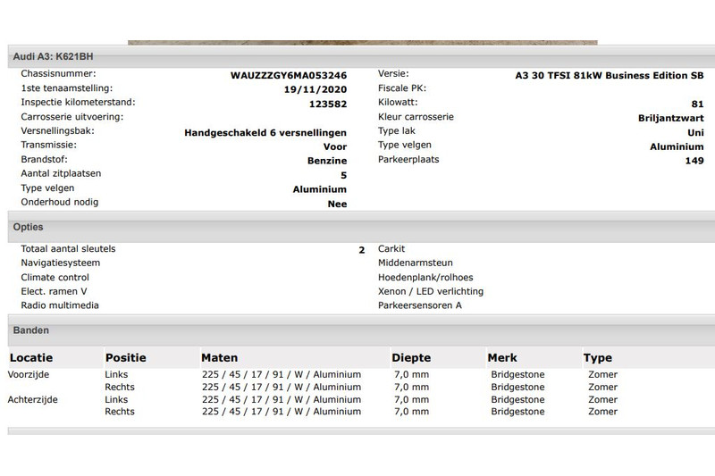 Het kan echter voorkomen dat uit de automatische voertuiginformatie een optie of accessoire naar voren komt die helaas toch niet op de auto aanwezig is.