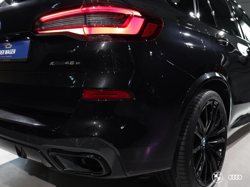 Deze fraaie BMW X5 45e M Sport beschikt over een aantal mooie opties zoals het elektrisch bedienbaar panoramadak, een elektrisch wegklapbare trekhaak, het BMW HiFi systeem, 4zone airco en de fraaie 22" jetblack velgen.