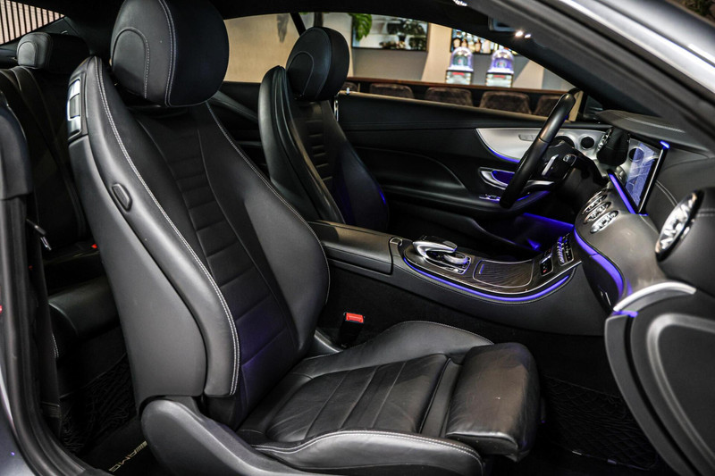 Deze zeer gunstig geprijsde Mercedes E-klasse Coupé is zonder overdrijven echt een fantastische occasion. De AMG-styling geeft een niet te missen uitstraling. Hij heeft een benzinemotor en een automatische transmissie. De leren bekleding is niet alleen mooi om te zien, maar zorgt ook voor comfort en een rijke uitstraling. Tijdens gure dagen is het prettig zitten in de verwarmbare voorstoelen. Ziet er goed uit, die sportstoelen. Maar waar het om gaat, is de solide zit onder alle omstandigheden. Wat een licht geeft dat glazen elektrisch bedienbare panoramadak. Bij de rijke uitrusting horen ook 20 inch lichtmetalen velgen, LED koplampen, AMG-styling, sportonderstel, warmtewerend glas en zwarte hemelbekleding.