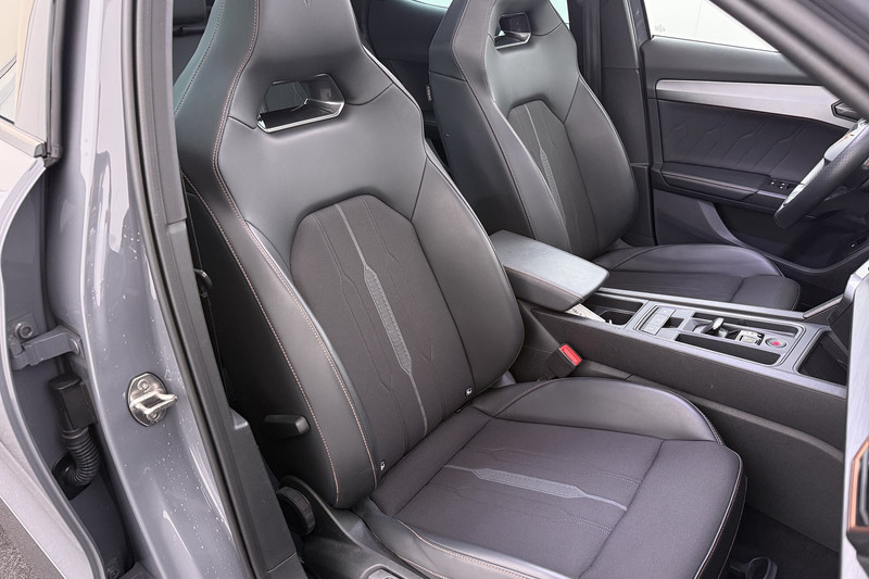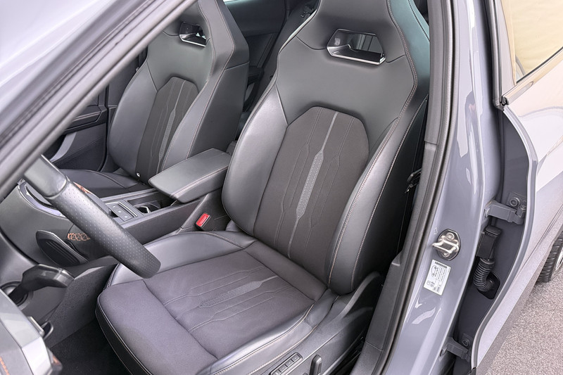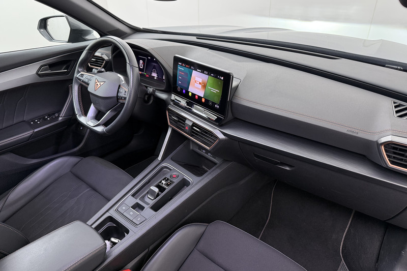 Geavanceerde veiligheidssystemen kijken tijdens elke rit met u mee en schatten continu de risico's in. In het instrumentarium ziet u tijdens de rit ook de belangrijkste verkeersborden aangegeven, die de auto automatisch voor u leest. Voorzien van het Lane-keeping systeem. Ofwel: blijf automatisch in je baan. Het forward collision warning-systeem berekent via een sensor de afstand tot het verkeer vóór u en komt in actie als er gevaar bestaat van een botsing. Bovenop deze veiligheidsfeatures heeft deze CUPRA bovendien dodehoekdetectie, hill hold functie, vermoeidheidsherkenning, autonoom remsysteem en bandenspanningcontrolesysteem.