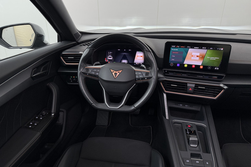 Geavanceerde veiligheidssystemen kijken tijdens elke rit met u mee en schatten continu de risico's in. In het instrumentarium ziet u tijdens de rit ook de belangrijkste verkeersborden aangegeven, die de auto automatisch voor u leest. Voorzien van het Lane-keeping systeem. Ofwel: blijf automatisch in je baan. Het forward collision warning-systeem berekent via een sensor de afstand tot het verkeer vóór u en komt in actie als er gevaar bestaat van een botsing. Bovenop deze veiligheidsfeatures heeft deze CUPRA bovendien dodehoekdetectie, hill hold functie, vermoeidheidsherkenning, autonoom remsysteem en bandenspanningcontrolesysteem.
