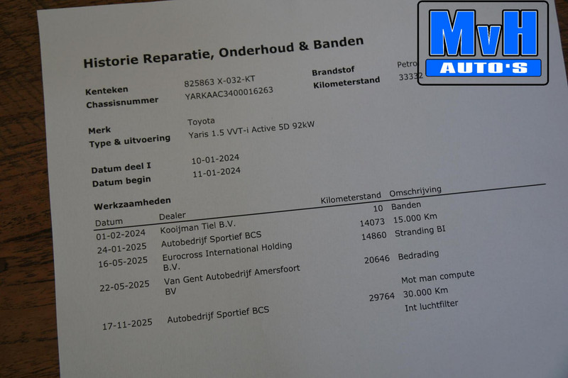 - Onderhoudshistorie aanwezig: Ja