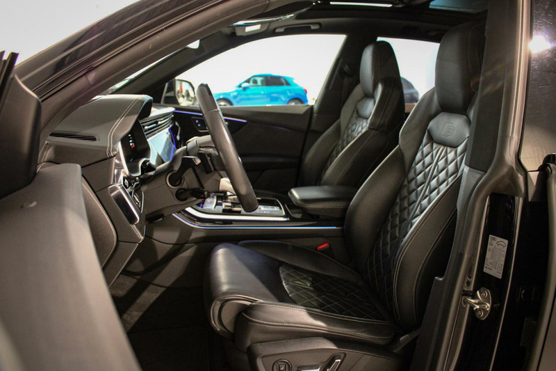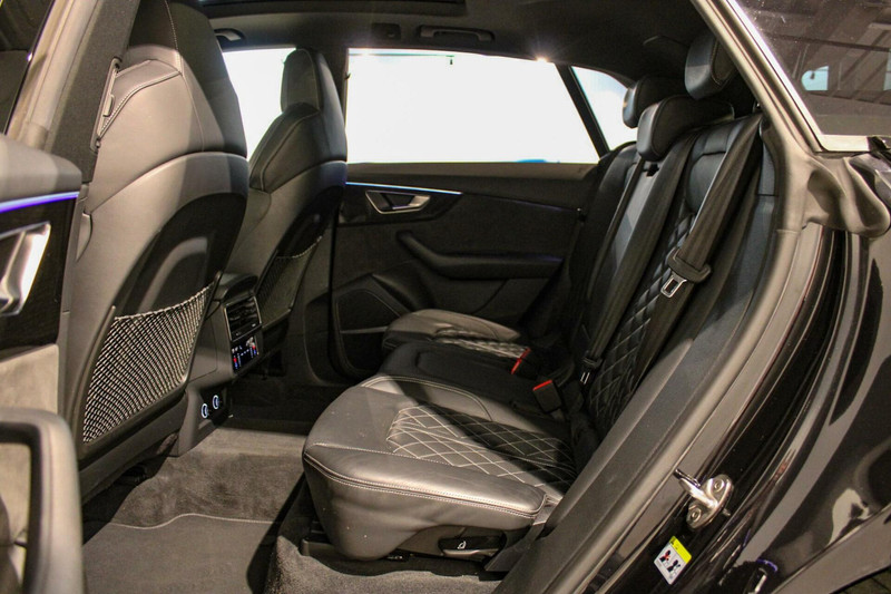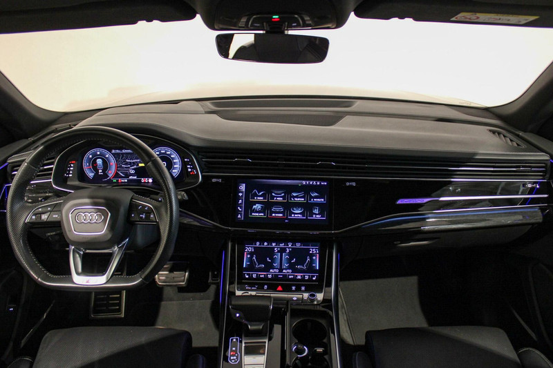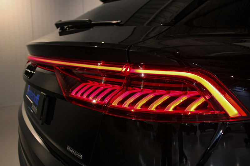 Zo is deze Q8 voorzien van fraaie lederen kuipstoelen, compleet met stoelverwarming, stoelventilatie én massagefunctie zowel voor de bestuurder als de bijrijder. Verder vinden we in het interieur een zwart hemelbekleding, een virtuele cockpit, dubbele touchscreens met haptische feedback, MMI navigatie plus, en natuurlijk het indrukwekkende Bang & Olufson audiogeluid zoals je dat van Audi mag verwachten.