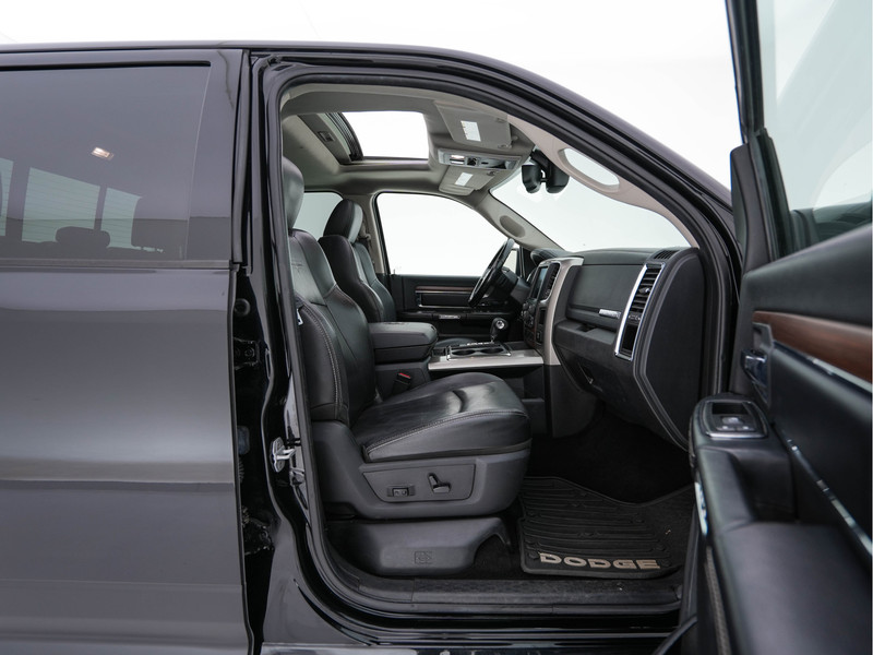 De Dodge Ram 1500 HEMI 5.7 V8 4x4 Quad Cab is een indrukwekkende en krachtige pick-up die prestaties, comfort en functionaliteit perfect combineert. Uitgevoerd in Brilliant Black Crystal Pearl met Leather-Trimmed Bucket Seats met Perforated Inserts in zwart, straalt deze Ram kracht en luxe uit. Dankzij de 5.7 liter HEMI V8 motor, inschakelbare vierwielaandrijving en royale uitrusting is dit de ideale combinatie van werkpaard en luxe gezinsauto (5-persoons).