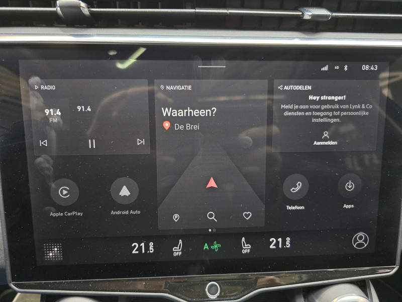 Over het digitale dashboard is goed nagedacht. Alle belangrijke functies binnen en buiten in één oogopslag. Met de achteruitrijcamera ziet u wat er achter de auto gebeurt. Zo rijdt u moeiteloos achteruit. Als u de adaptive cruise control inschakelt, regelt de auto zelf de snelheid en de afstand tot de auto voor u. Het infotainmentsysteem bedient u met uw vingers of met uw stem, met dank aan de geïntegreerde stembediening. Wegwijs in elke wijk, stad of reisbestemming? Daarvoor zorgt het navigatiesysteem! Deze Lynk & Co is voorzien van achteropkomend verkeer waarschuwing, automatische airconditioning, draadloos opladen, DAB ontvangst, regensensor en keyless entry.