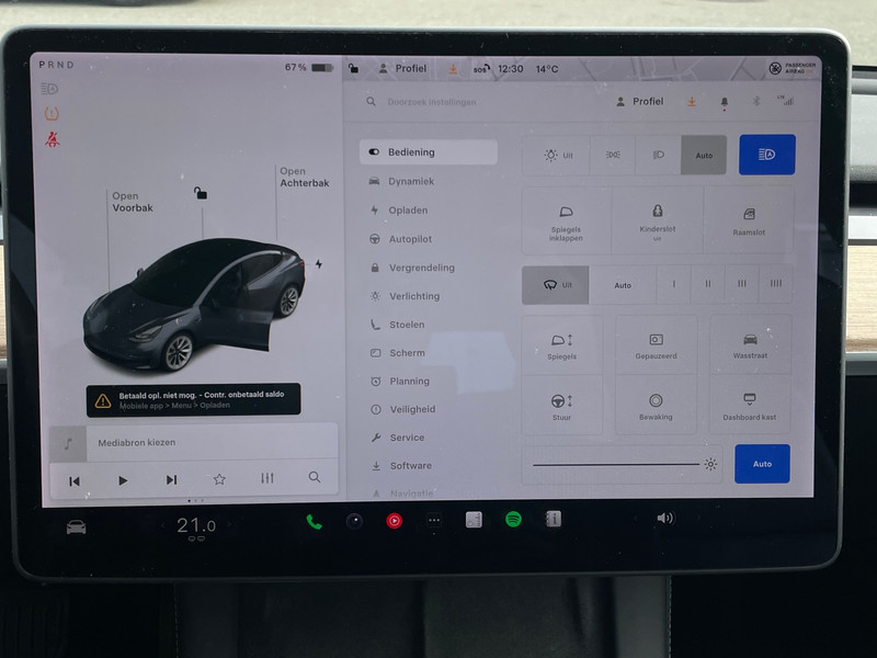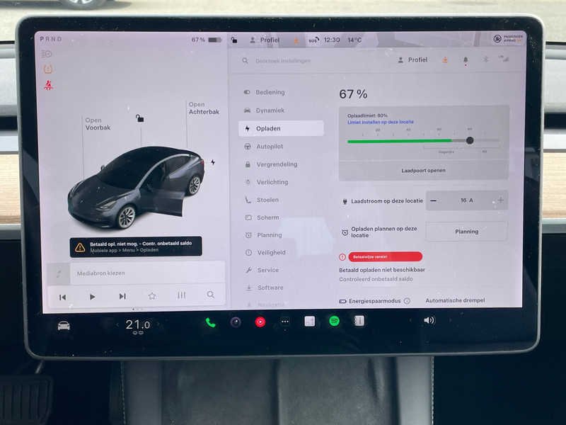 Accu laden: Type 2, 3-fasen, 16.5 kW, 125 km actieradius per uur, compleet vol in 2 uur en 49 minuten