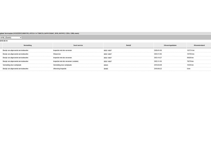 - Onderhoudshistorie aanwezig: Ja