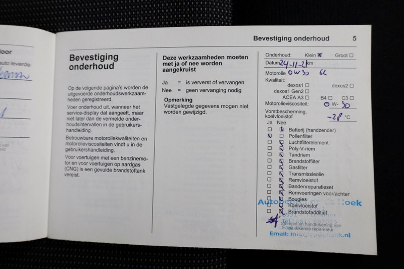 - Onderhoudsboekje aanwezig?: