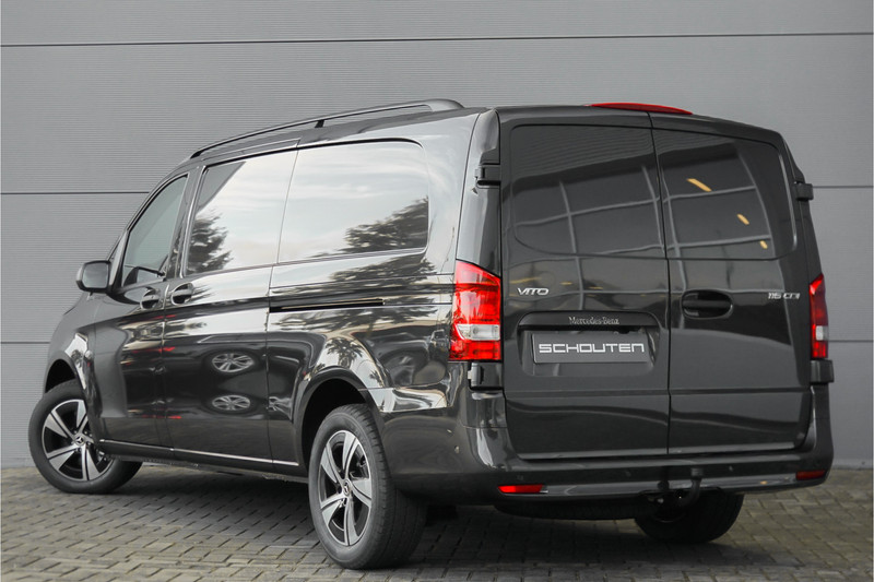 Autobedrijf Schouten biedt u deze nieuwe Mercedes-Benz Vito 116 CDI L3 Pro aan, in de prachtige kleur: 'Graphitgrau', met een zwart lederen interieur. Dit betreft een rijklaar prijs, inclusief lichtmetalen velgen en de trekhaak 2.500 KG. Verder beschikt de Mercedes-Benz Vito 116CDI L3 Pro over een mooie lijst met opties, waaronder: