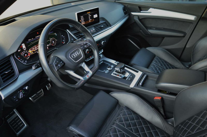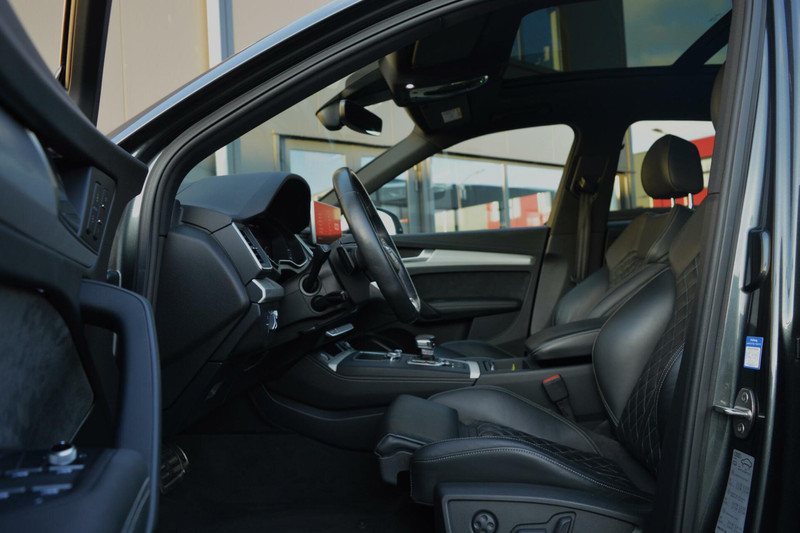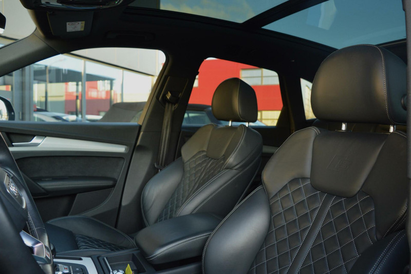 Prachtige Audi SQ5 3.0 TFSI. Het interieur uitgevoerd met Nappa lederen stoelen met ruitenstiksel voor een sportieve uitstraling tevens elektrisch bedienbaar en verwarmd. Onder de motorkap een krachtige 6-cilinder motor welke een vermogen levert van 354pk gekoppeld aan een zeer fijn schakelende DSG-automaat. Om het comfort te optimaliseren is de Audi uitgevoerd met luchtvering, adaptieve cruise controle, lane assist, keyless entry/go, DAB en vele extra.