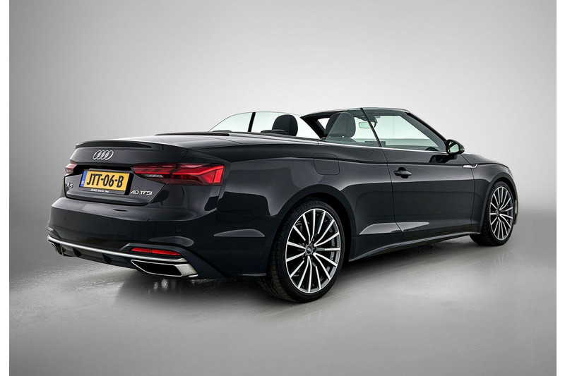 Zijn dynamische uiterlijk maakt al direct duidelijk wat voor rijervaring u van deze Audi A5 Cabriolet mag verwachten: pure sportiviteit. Hij heeft een benzinemotor en een automatische transmissie. Het lederen interieur ademt luxe, en het zit uiteraard fantastisch. Een weldaad voor uw rug en die van uw bijrijder: deze Audi A5 Cabriolet heeft verwarmbare voorstoelen met massagefunctie. Chauffeur en bijrijder zitten stabiel in de scherpe bochten door de sportstoelen. Met het elektrisch bedienbare dak verandert u deze cabrio in luttele seconden in een auto voor zonaanbidders. Met matrix LED-verlichting rijdt u eigenlijk altijd met groot licht, dus maximaal zicht. Toch is verblinden er niet bij, want het systeem regelt de verlichting zo dat tegenliggers er geen last van hebben. Ook 19 inch lichtmetalen velgen, sportonderstel, warmtewerend glas, LED-achterlichten, verstelbare lendensteunen en windscherm horen tot de voorzieningen op deze auto.