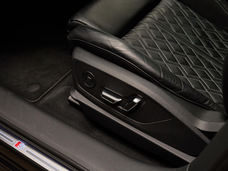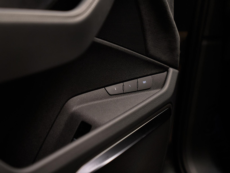 De elegante kleur Daytonagrijs pareleffect (6Y6Y) wordt versterkt door het interieurlijn S line-pakket (WQS) met mat geborstelde aluminium inleg (5TG), zwarte hemelbekleding (6NQ) en sportpedalen in roestvrijstaal (VF1). De 22 inch Audi Sport lichtmetalen velgen (C8E) en HD Matrix LED-koplampen (8G4) maken het plaatje compleet.