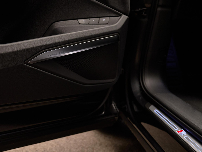 De elegante kleur Daytonagrijs pareleffect (6Y6Y) wordt versterkt door het interieurlijn S line-pakket (WQS) met mat geborstelde aluminium inleg (5TG), zwarte hemelbekleding (6NQ) en sportpedalen in roestvrijstaal (VF1). De 22 inch Audi Sport lichtmetalen velgen (C8E) en HD Matrix LED-koplampen (8G4) maken het plaatje compleet.