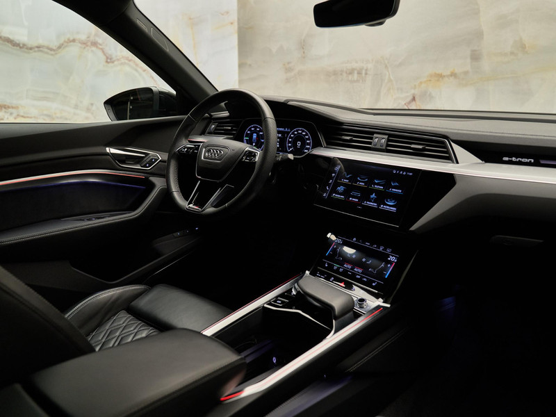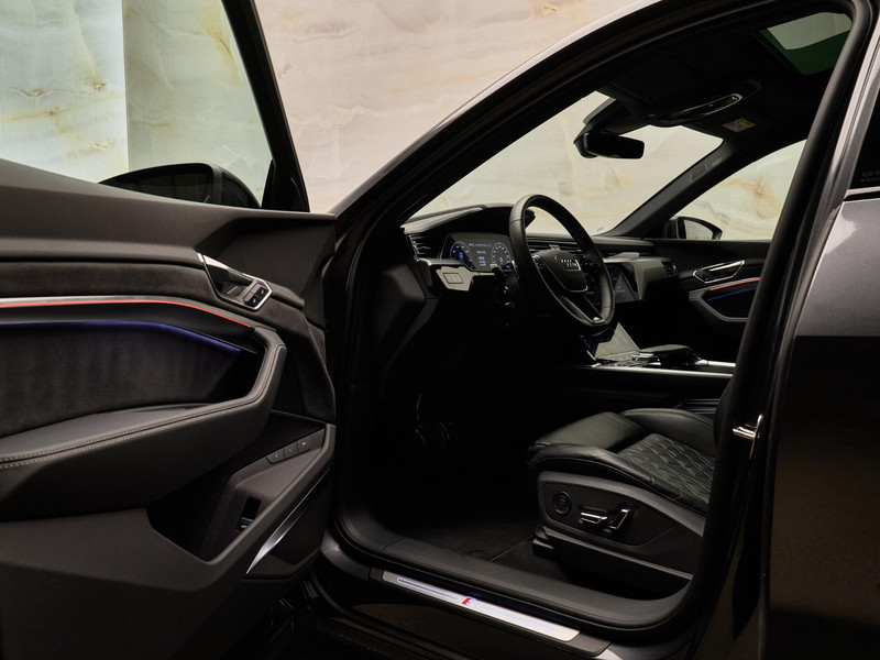 Dit betreft een zeer luxe en sportief uitgevoerde Audi Q8 Sportback e-tron 55 Quattro (408 pk) S Edition. Kleur: Daytonagrijs pareleffect (6Y6Y) en interieur: Valcona-lederen bekleding (N2R) inclusief S-logo's. Deze auto heeft slechts 48.066 km gereden en verkeert in zeer goede staat. Uiteraard is alle documentatie aanwezig. Voorzien van vele opties zoals: