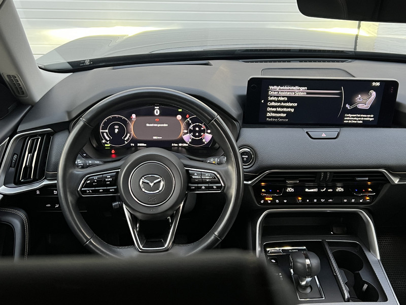 Voor het overzicht tijdens iedere rit is deze Mazda CX-60 voorzien van een gemakkelijk afleesbaar digitaal dashboard. De 360 graden camera op deze auto biedt u een volledig, panoramisch zicht op de omgeving. Adaptive cruise control is een comfortabele en veilige optie. Het systeem reguleert de snelheid en houdt automatisch afstand tot uw voorligger. Praat tegen deze auto en de auto doet wat u wilt dankzij de ingebouwde spraakbediening. Met uw smartphone maakt u overal contact met de auto. Remote services geven direct inzicht in uiteenlopende functies en zijn op afstand te activeren. Ook is de Mazda uitgerust met: Bose-audioinstallatie, full map navigatiesysteem, kruisend verkeer detectie, electronic climate control, schakelpaddles aan het stuur en draadloos opladen.
