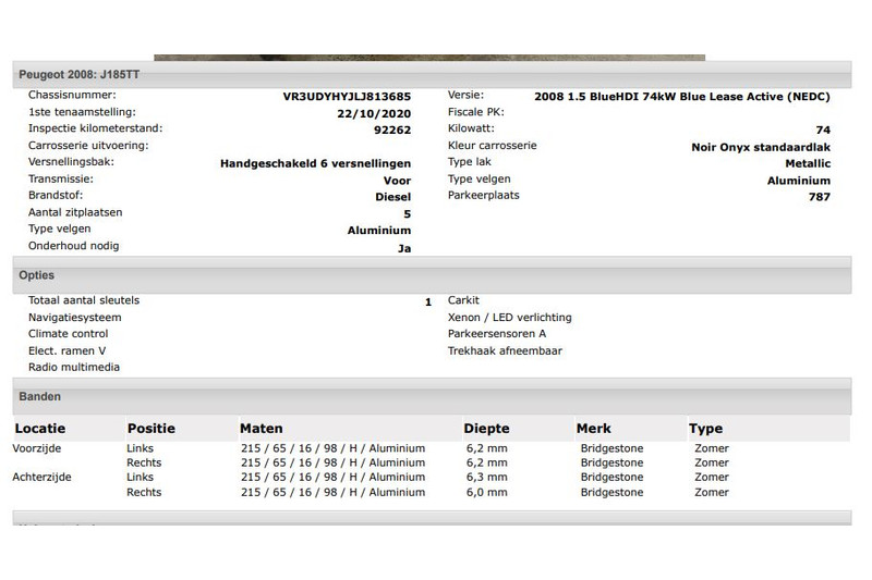 Het kan echter voorkomen dat uit de automatische voertuiginformatie een optie of accessoire naar voren komt die helaas toch niet op de auto aanwezig is.