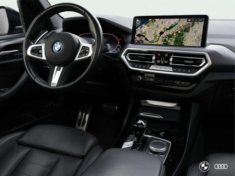 Deze fraaie BMW X3 30e uitgevoerd in de kleur carbonzwart beschikt over een uitgebreide optielijst met daarin o.a; een elektrisch bedienbaar panoramadak, elektrisch bedienbare zetels met memoryfunctie, een headup display, stoelventilatie, achterbankverwarming een elektrisch wegklapbare trekhaak en de fraaie jetblack 20" wielen.