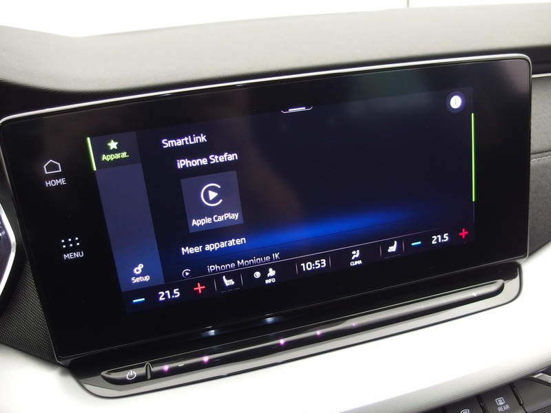 Het personaliseren van uw cockpitinterface is mogelijk met het digitale dashboard in deze auto. Afstand schatten bij het achteruitrijden? Niet nodig. U weet het precies, dankzij de achteruitrijcamera. Het infotainmentsysteem bedient u met uw vingers of met uw stem, met dank aan de geïntegreerde stembediening. Functies activeren en storingen opsporen? Bij deze auto gaat het eenvoudig via uw smartphone. Overal en altijd. Je weet altijd waar je moet zijn, dankzij het full map navigatiesysteem. Deze ŠKODA is voorzien van WIFI-hotspot, automatische airconditioning, schakelpaddles aan het stuur, draadloos opladen, DAB ontvangst en regensensor.