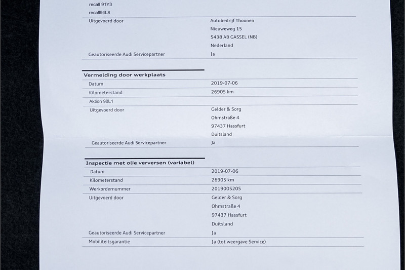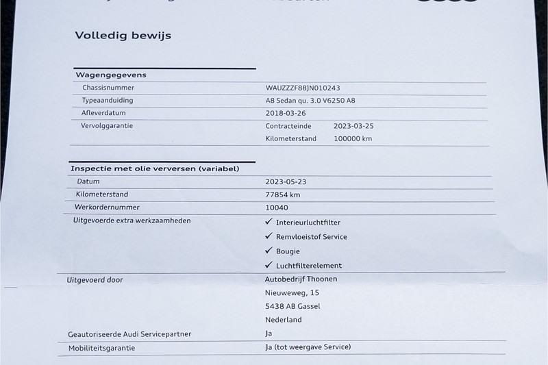 Al onze auto’s worden bij binnenkomst gecontroleerd in onze werkplaats. Hierdoor hebben wij én u zicht op de uitgevoerde werkzaamheden en de te verwachten werkzaamheden. Daarnaast worden onze occasions standaard voorzien van een vloeistoffencontrole, minimaal 6 maanden APK en een poetsbeurt. Tegen een meerprijs van € 1.250,- kunt u kiezen voor ons Premium-afleverpakket. Hierbij wordt uw auto voorzien van een afleverbeurt volgens fabrieksvoorschrift, minimaal 10 maanden APK, halve tank brandstof, complete poetsbeurt en 12 maanden BOVAG garantie.