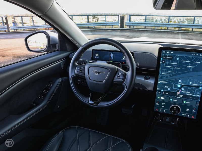 Daarnaast is deze Mustang Mach-E zeer luxe uitgerust en voorzien van praktisch alle denkbare opties, zoals: Bang & Olufsen premium audio installatie, elektrisch bedienbare achterklep met sensorsturing, parkeer assistent, rondomzicht camera, verkeersbord detectie, achteruitrijcamera, Apple CarPlay / Android Auto, adaptieve cruise control met Stop&Go en stuurhulp, DAB radio, dodehoek detectie, draadloze telefoonlader, extra getint glas achter, grootlichtassistent, keyless entry, keyless start, Isofix, LED koplampen en achterlichten, lederen bekleding, lichtmetalen velgen 19 inch, navigatiesysteem full map, parkeersensor voor en achter, rijstrooksensor met correctie, stuurverwarming, verwarmde voorruit, verwarmde voorstoelen, volledig digitaal instrumentenpaneel en meer.