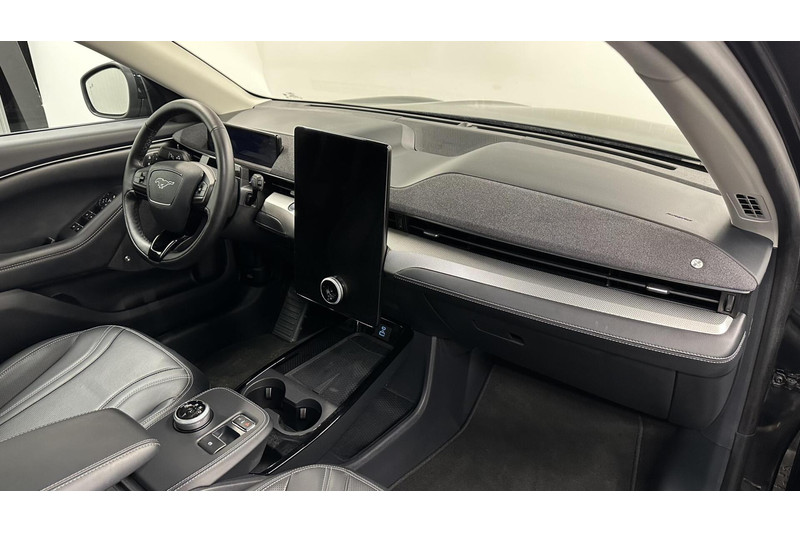 Het systeem controleert alle belangrijke functies en geeft die perfect weer via het digitale dashboard. Met de hulp van vier camera's, biedt de 360 graden camera op deze auto een panoramisch zicht, wat bijzonder nuttig is bij het parkeren en manoeuvreren. Met adaptive cruise control houdt de auto zelfstandig afstand tot uw voorligger. Een veiligheidsverhogende optie waarmee u comfortabel onderweg bent. Spraaksturing luistert naar uw stem en bedient de belangrijkste voertuigfuncties. Deze Ford Mustang Mach-E is voorzien van remote services. Via uw smartphone bedient u diverse functies ook op afstand en krijgt u informatie over de status van uw auto. Natuurlijk behoren full map navigatiesysteem, automatische airconditioning, draadloos opladen, DAB ontvangst, regensensor en keyless entry ook tot de uitrusting van deze complete auto.