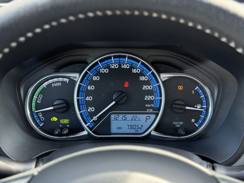 Het is een auto die er nog jaren tegenaan kan, deze Toyota Yaris die 79052 kilometer op de teller heeft staan. Naast de verbrandingsmotor beschikt de auto ook over een elektromotor, die zorgt voor een extra laag brandstofverbruik. De uitmonstering van deze auto wordt gecompleteerd door onder meer 15 inch lichtmetalen velgen en sportonderstel.