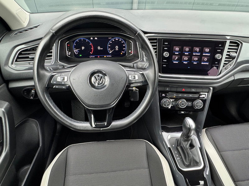 Pas de interface van uw cockpit moeiteloos aan. Het is mogelijk door het digitale dashboard in deze auto. Als u de adaptive cruise control inschakelt, regelt de auto zelf de snelheid en de afstand tot de auto voor u. In het zeldzame geval van een storing weet u nog eerder dan de monteur wat er mankeert. Uw smartphone met remote services geeft direct inzicht. In deze T-ROC vindt u schakelaars op het stuur om het audio-navigatiesysteem te bedienen en het audio-installatiesysteem met DAB-ontvangst. Uw smartphone komt onderweg weer helemaal op verhaal door de draadloze telefoonlader. Met automatische airconditioning, parkeersensoren achter, regensensor, automatisch dimmende binnenspiegel, lederen stuur en isofix-aansluiting is deze auto helemaal compleet.