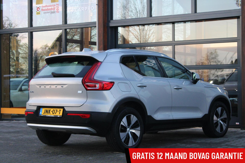 Deze Volvo XC40 maakt een voortreffelijke indruk. Hiermee mag je gezien worden in de stad én op de weg! Deze Volvo XC40 is voorzien van een hybride motor en gebruikt dus zowel brandstof als elektriciteit. Dat betekent zuinige kilometers en toch maximale prestaties. Neem plaats achter het stuur en ervaar de weldaad van de comfortstoelen. Met een druk op de knop gaat de elektrische achterklep open. Verder is de Volvo uitgerust met: 18 inch lichtmetalen velgen, LED koplampen, in delen neerklapbare achterbank, LED-achterlichten, verstelbare lendensteunen en snelheidsafhankelijke stuurbekrachtiging.