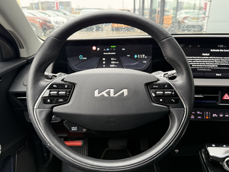 Nooit meer tanken. Een laadkabel volstaat om het accupakket van deze Kia EV6 op te laden. De voordelen van de elektromotor spreken voor zich: stil, schoon en snel! De krachtige motor geeft deze Kia uitstekende prestaties. Deze Kia EV6 legt bestuurder én bijrijder compleet in de watten met de verwarmbare voorstoelen. De elektrisch bedienbare achterklep opent met een druk op de knop. Afzien is er bij deze Kia EV6 niet bij. Zelfs achterin vinden we de verwarmde achterbank. In deze auto profiteert u onder andere ook van: 19 inch lichtmetalen velgen, LED koplampen, warmtewerend glas, in delen neerklapbare achterbank, LED-achterlichten en verstelbare lendensteunen.