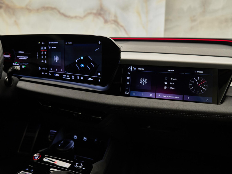 Met het MMI Experience Pro (PYH) beschikt u over de nieuwste generatie infotainment, inclusief MMI-passagiersdisplay (JH1), Audi connect-pakketten (IT3 / IU6 / JE3), Comforttelefonie (9ZE) en Digitale radio-ontvangst (QV3). De USB-C-aansluitingen met verhoogde laadcapaciteit (U9E) en Functies on-demand (FP1) maken de auto bovendien toekomstbestendig. Het hoogwaardige audiosysteem met luidsprekers voor en achter (8RT) zorgt voor een uitstekende geluidskwaliteit.