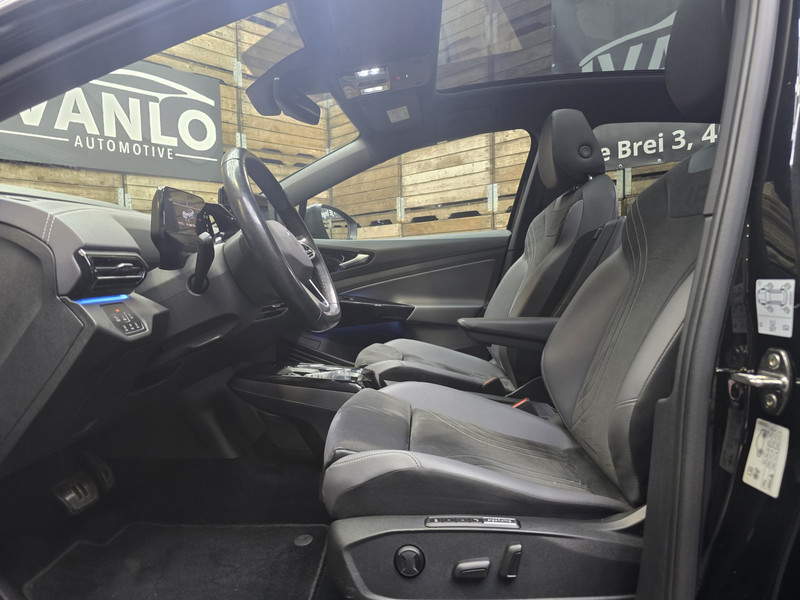 Volkswagen-rijders waarderen hun merk om de degelijkheid van de techniek en de uitmuntende rijkwaliteiten. Een Volkswagen is bovendien comfortabel en ruim, omdat hij altijd is ontworpen met de inzittenden als uitgangspunt. Een ID.5 zoals deze bijvoorbeeld, biedt ruim comfort voor vijf inzittenden. Een belangrijke eigenschap van iedere Volkswagen is zijn duurzaamheid. Dat ziet u ook aan deze ID.5. Voorin is het 's winters genieten met de verwarmbare voorstoelen. Deze hebben bovendien een massagefunctie, zodat bestuurder en bijrijder altijd fit en soepel uitstappen. Dankzij de elektrische stoelbediening is het gemakkelijk om de optimale zitpositie te vinden. De bagageruimte is toegankelijk via een comfortverhogende elektrische achterklep. In weer en wind een cabriosensatie? Dat kan met het riante glazen panoramadak. Stramme vingers krijgen 's winters een VIP-behandeling van het verwarmd stuurwiel. De geavanceerde matrix LED-verlichting in de koplampen levert maximaal helder zicht en past zich subtiel aan zodra er een tegenligger komt. Zonder lichtkwaliteitsverlies! De uitmonstering van deze auto wordt gecompleteerd door onder meer 20 inch lichtmetalen velgen, warmtewerend glas, in delen neerklapbare achterbank, LED-achterlichten, elektrisch verstelbare lendensteun en verwarmde ruitensproeiers.