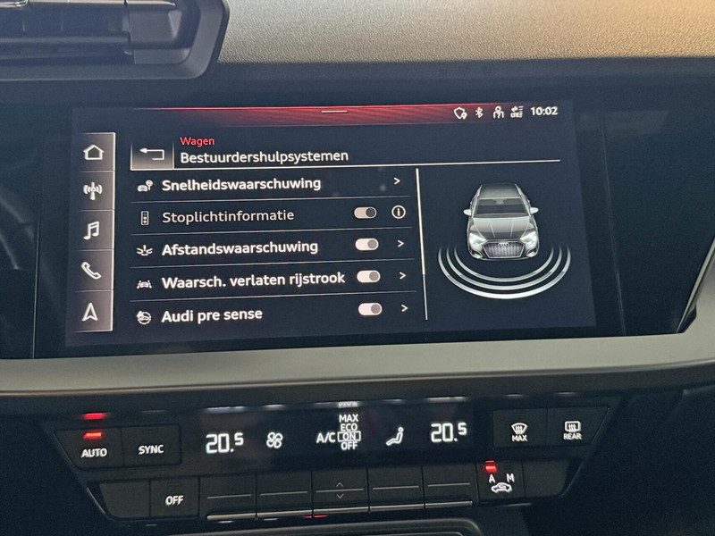 Zoals u mag verwachten van deze Audi A3 Sportback is hij uitgerust met een reeks aan actieve veiligheidssystemen. Bij de veiligheidssystemen van deze Audi hoort ook de verkeersbord-detectie. Die leest tijdens het rijden als het ware met u mee en attendeert u op de significante verkeersborden langs en boven de weg. Keep your lane? Het Lane-keeping systeem zorgt er automatisch voor. Bij een noodstop levert de Brake Assist automatisch nóg meer remkracht om de remweg te verkorten.